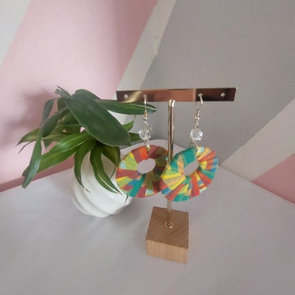 Apportez une touche de fraîcheur et de gaieté à votre tenue avec ces boucles d’oreilles artisanales aux couleurs vibrantes.