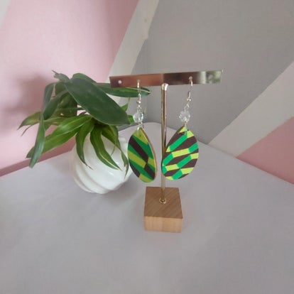 Affirmez votre style avec ces boucles d’oreilles artisanales en forme de goutte, sublimées par des motifs graphiques et des couleurs vibrantes.
