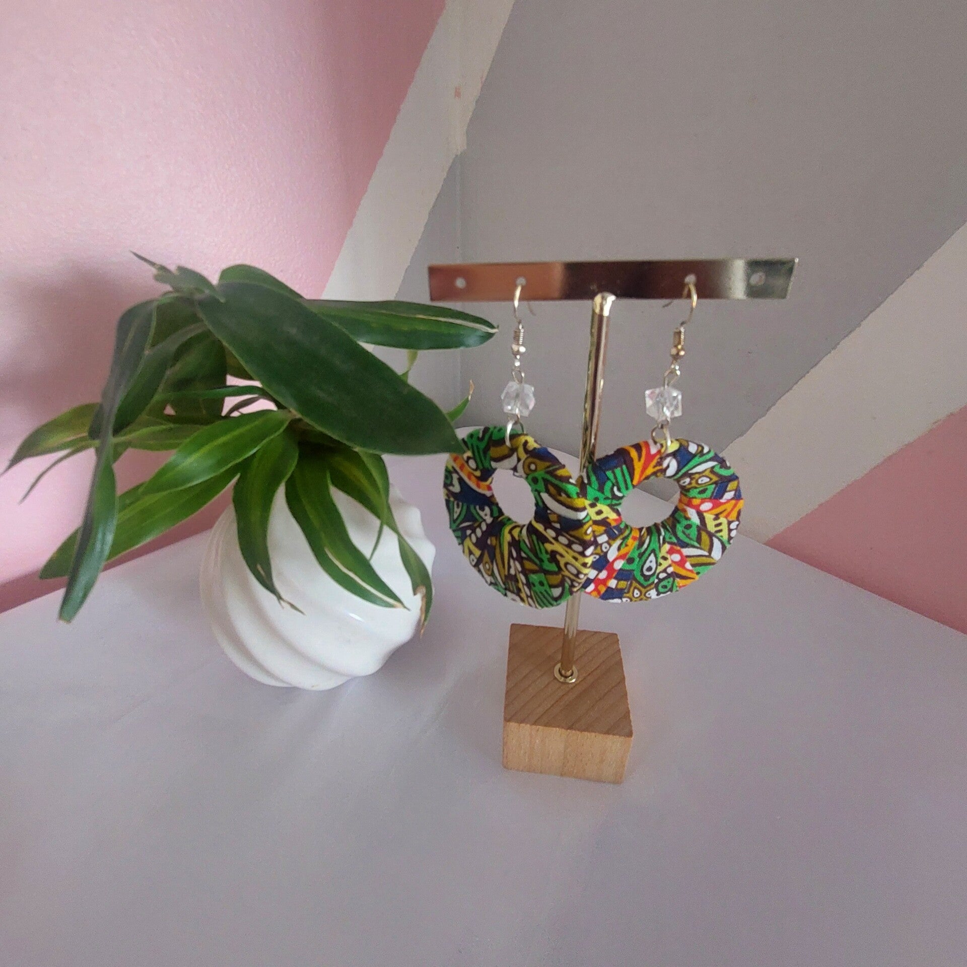 Exprimez votre personnalité avec ces boucles d’oreilles artisanales aux motifs africains vibrants.